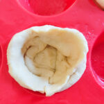 - Press the rectangle piece into one of the muffin tins. Press the top edges together to make a cup inside the tin. You will have 8 crescent muffin cups.
